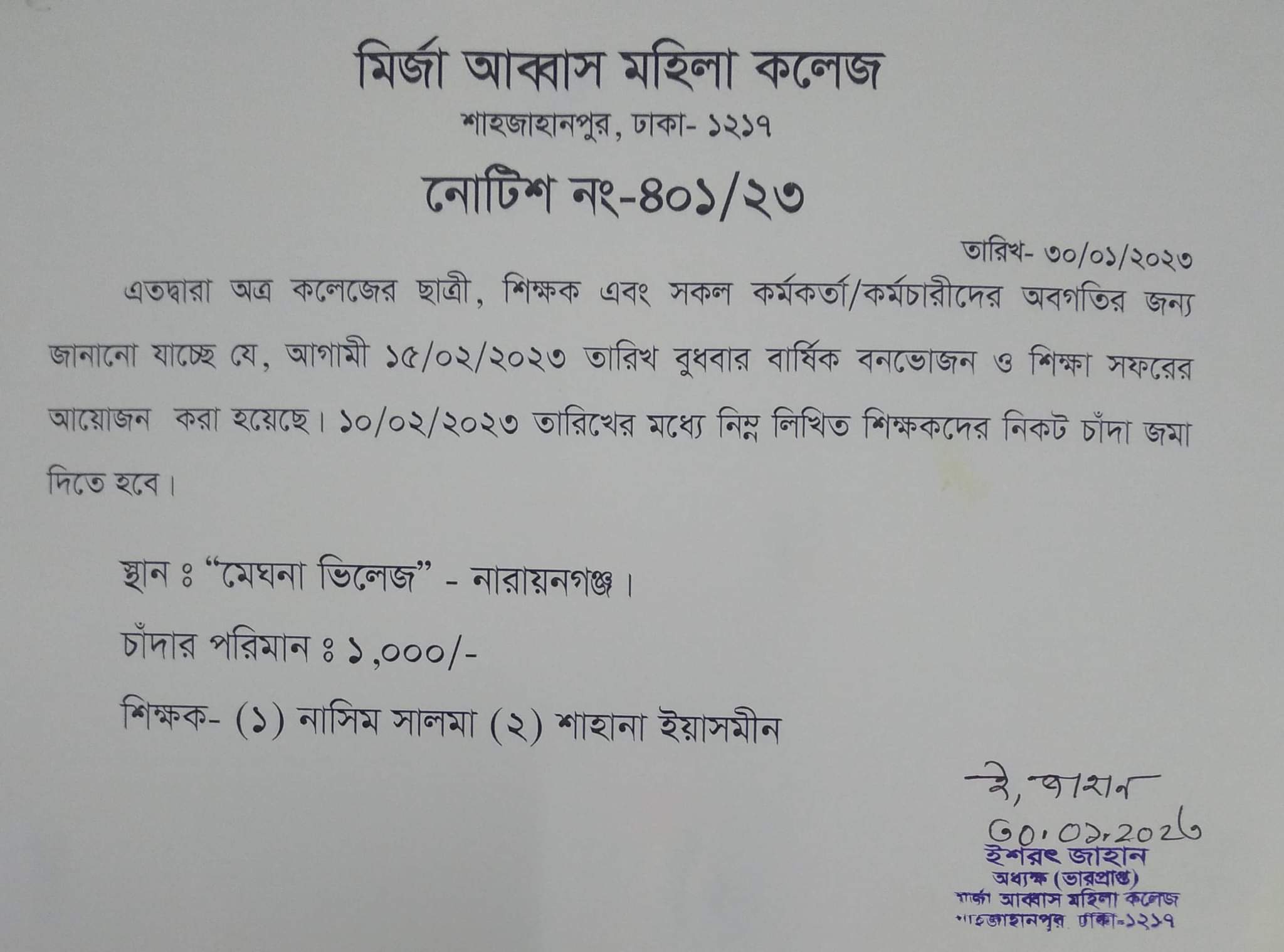 বার্ষিক বনভোজন ও শিক্ষা সফর ২০২৩ মির্জা আব্বাস মহিলা কলেজ Friday, February 3, 2023 বিনোদন Download received_493268643000611.jpeg